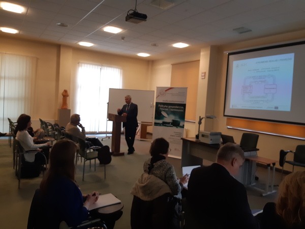 Następnym prelegentem był profesor UEP dr hab. Eryk Łon, który wygłosił wykład dotyczący celów polskiej polityki pieniężnej. – Dla pomyślności struktury gospodarczej Polski jest bardzo ważne, by bank centralny – Narodowy Bank Polski – współpracował z rządem – zaznaczył. Zwrócił także uwagę, że realizacja celu inflacyjnego przez bank centralny musi być prowadzona tak, by nie zaszkodzić sferze realnej. Bank centralny ma za zadanie nie dopuścić do hiperinflacji oraz deflacji, która jest obecnie rosnącą tendencją na świecie. Narodowy Bank Polski prowadzi stabilną politykę pieniężną. Stopa procentowa jest niemal niezmienna od 2015 roku. Jak zaznaczył prelegent, niskie stopy procentowe skłaniają do inwestowania.