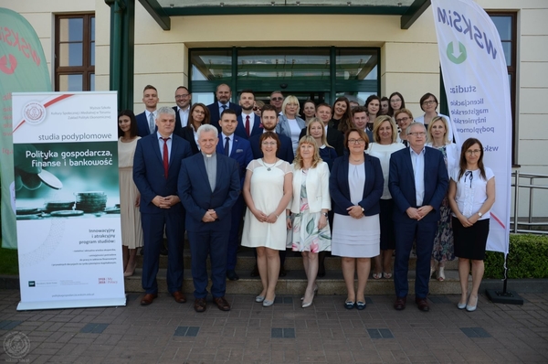 Dwusemestralne studia realizowane były przez WSKSiM jako projekt we współpracy z Narodowym Bankiem Polskim. Słuchacze pod kierunkiem promotorów – dr hab. Eryka Łona, dr Katarzyny Kamińskiej i dr Doroty Żuchowskiej przygotowali bardzo interesujące prace z zakresu polityki gospodarczej, korzyści i kosztów wejścia Polski do strefy euro, Brexitu, różnych produktów bankowych, rynku nieruchomości w Polsce, wykorzystania funduszy UE w ostatniej perspektywie finansowej, numizmatyki w działalności kulturalno-oświatowej NBP.