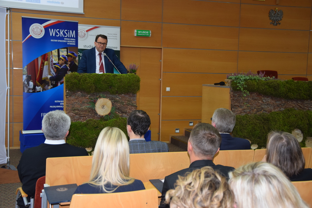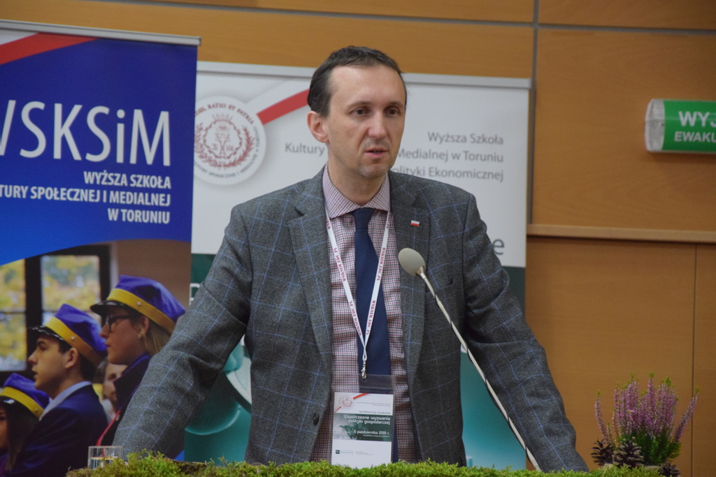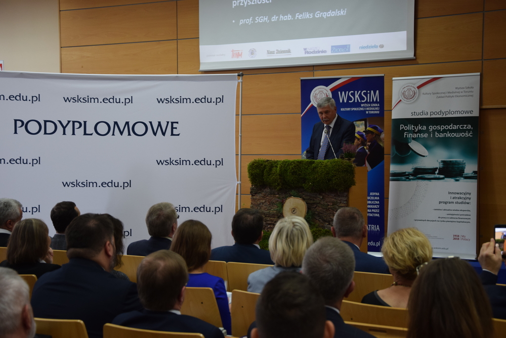 5 października 2019 r. w murach Wyższej Szkoły Kultury Społecznej i Medialnej w Toruniu odbyła się konferencja naukowa „Współczesne wyzwania polityki gospodarczej”. Wydarzenie rozpoczęło się powitaniem i krótkim słowem wstępu wygłoszonym przez dziekan WSKSiM dr Dorotę Żuchowską. Następnie głos zabrał: Rektor-Założyciel WSKSiM o. dr Tadeusz Rydzyk. Pierwszą część wydarzenia stanowiło uroczyste wręczenie dyplomów absolwentom studiów podyplomowych „Polityka gospodarcza, finanse i bankowość” – projektu realizowanego z Narodowym Bankiem Polskim w ramach programu edukacji ekonomicznej.